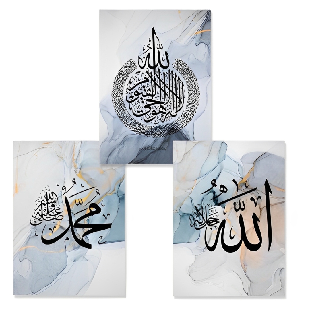 3 Marble Blue Islamic Wall Art Modern Arabic Calligraphy