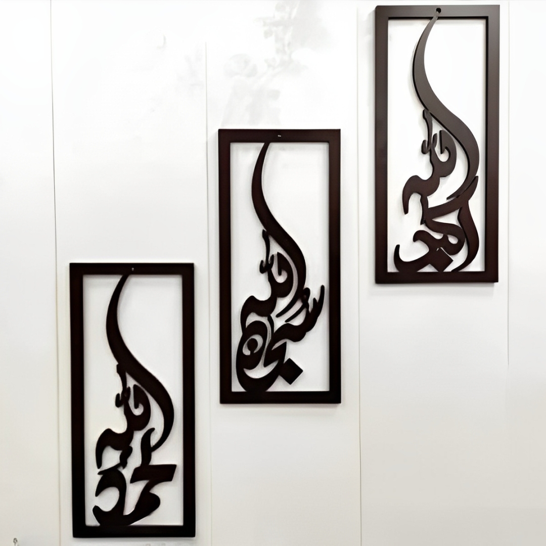 3D Wooden Wall Art – Tasbeeh-e-Fatima Calligraphy (3 pcs set) – Designer Decors
